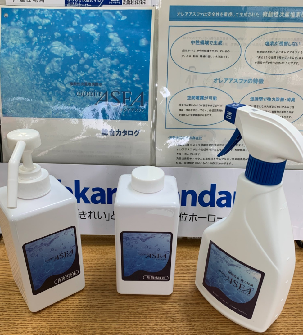 微酸性次亜塩素酸水を使っています。
